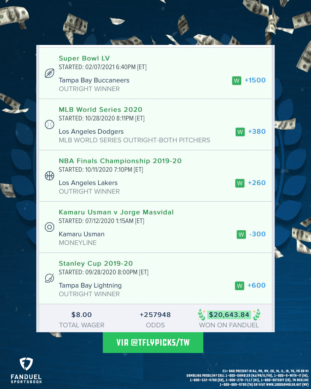 Fanduel Sportsbook On Twitter This Is Unreal A Customer In Indiana Placed This 8 Parlay Back On July 7th They Correctly Nailed The Champions In All 4 Major Sports And Cashed The